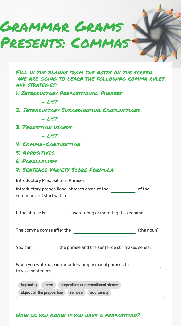 Prepositional phrases worksheets with answers pdf.
